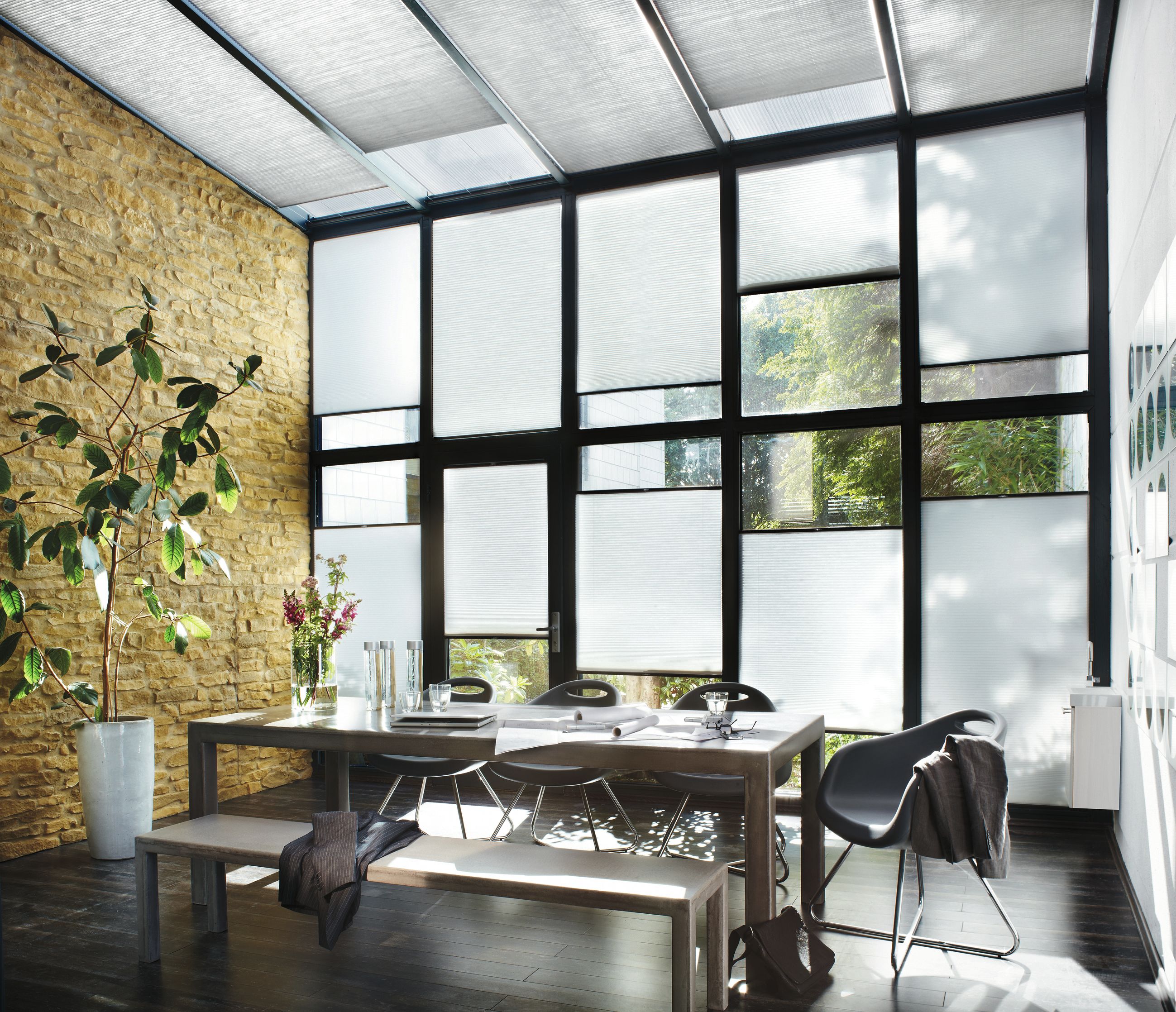 Met Duette® Shades bepaal je zelf hoeveel licht er binnenvalt en hoeveel privacy je wilt. Je kunt kiezen uit transparante stoffen die zacht licht doorlaten tot verduisterende varianten voor optimale privacy. Onze huiscollectie Duette® Shades zijn geschikt voor verschillende raamvormen, van grote woonkamervensters tot dakramen en draai-kiepramen.