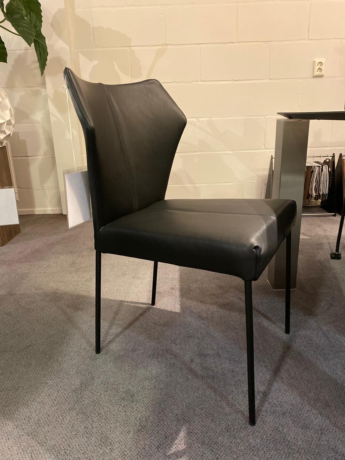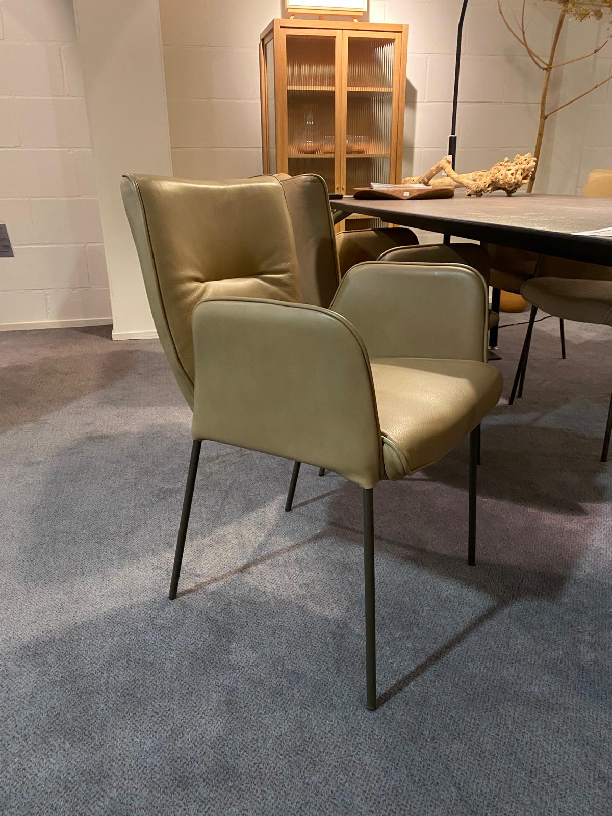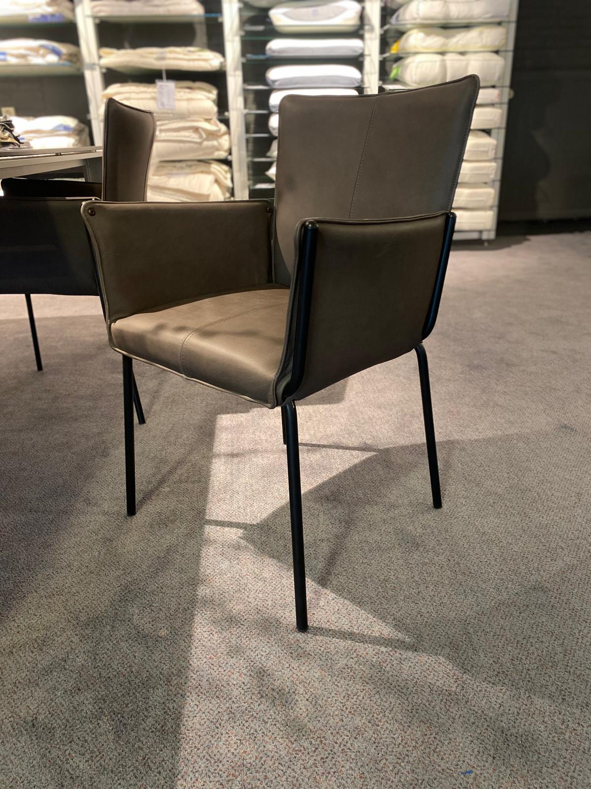 leer, frame RVS met eiken armleuningen