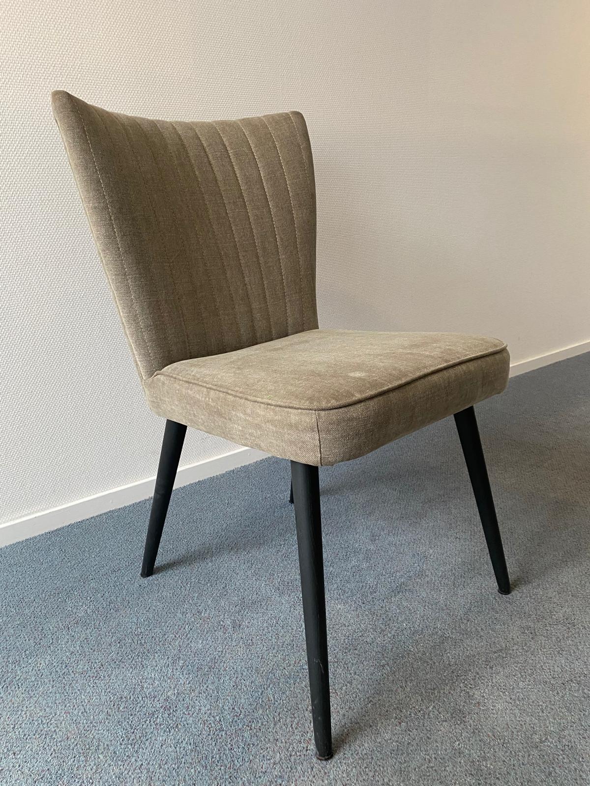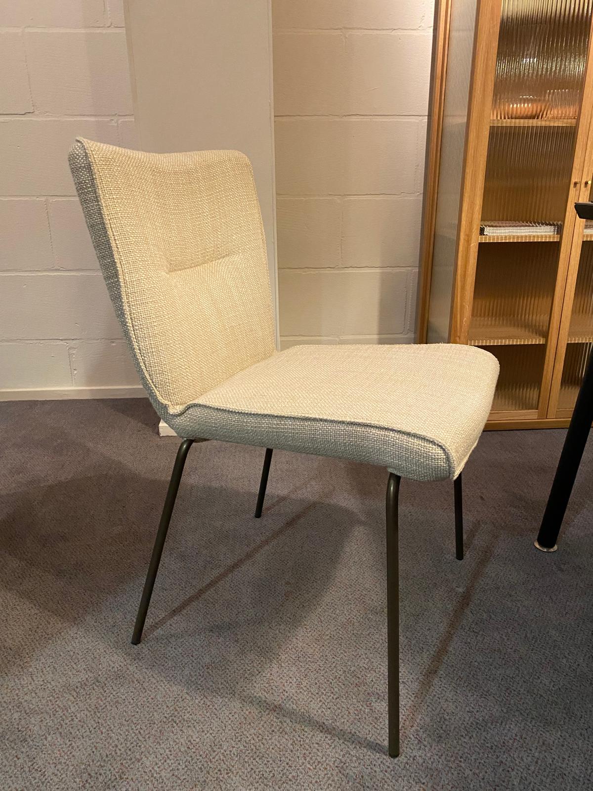 Bestaande uit eettafel van 200 x 100, 2 armstoelen stof en 2 eetstoelen stof